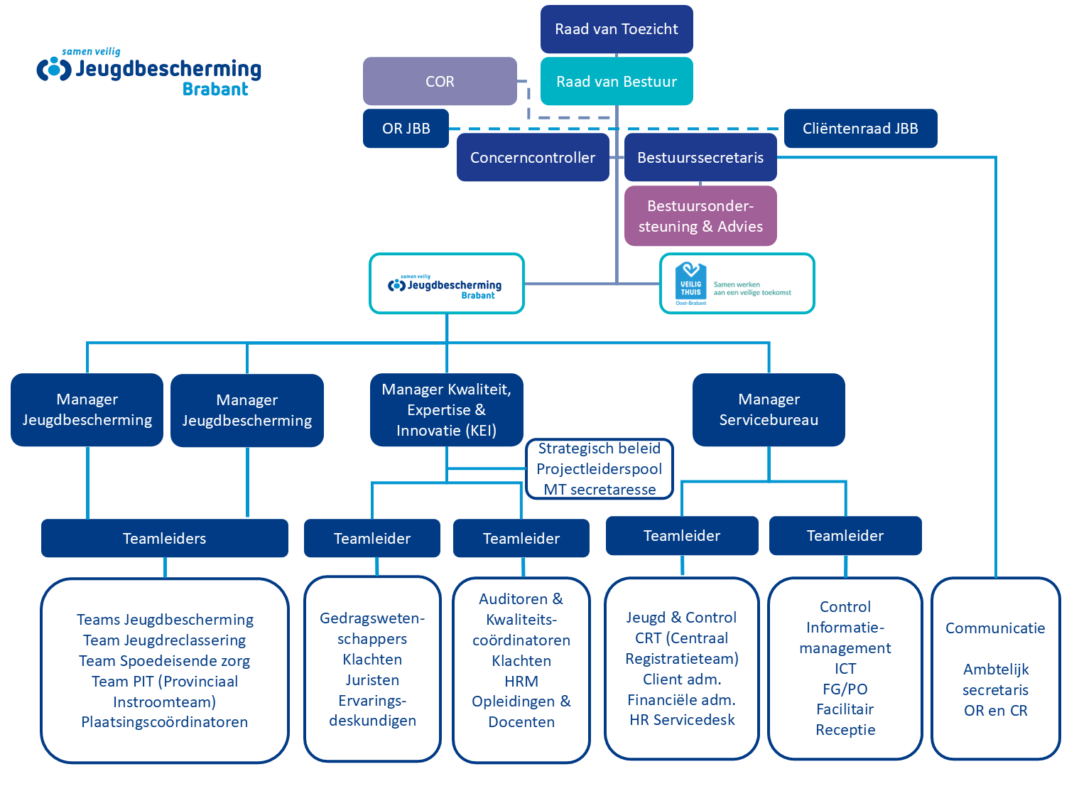 Bekijk hier het organogram van Jeugdbescherming Brabant.